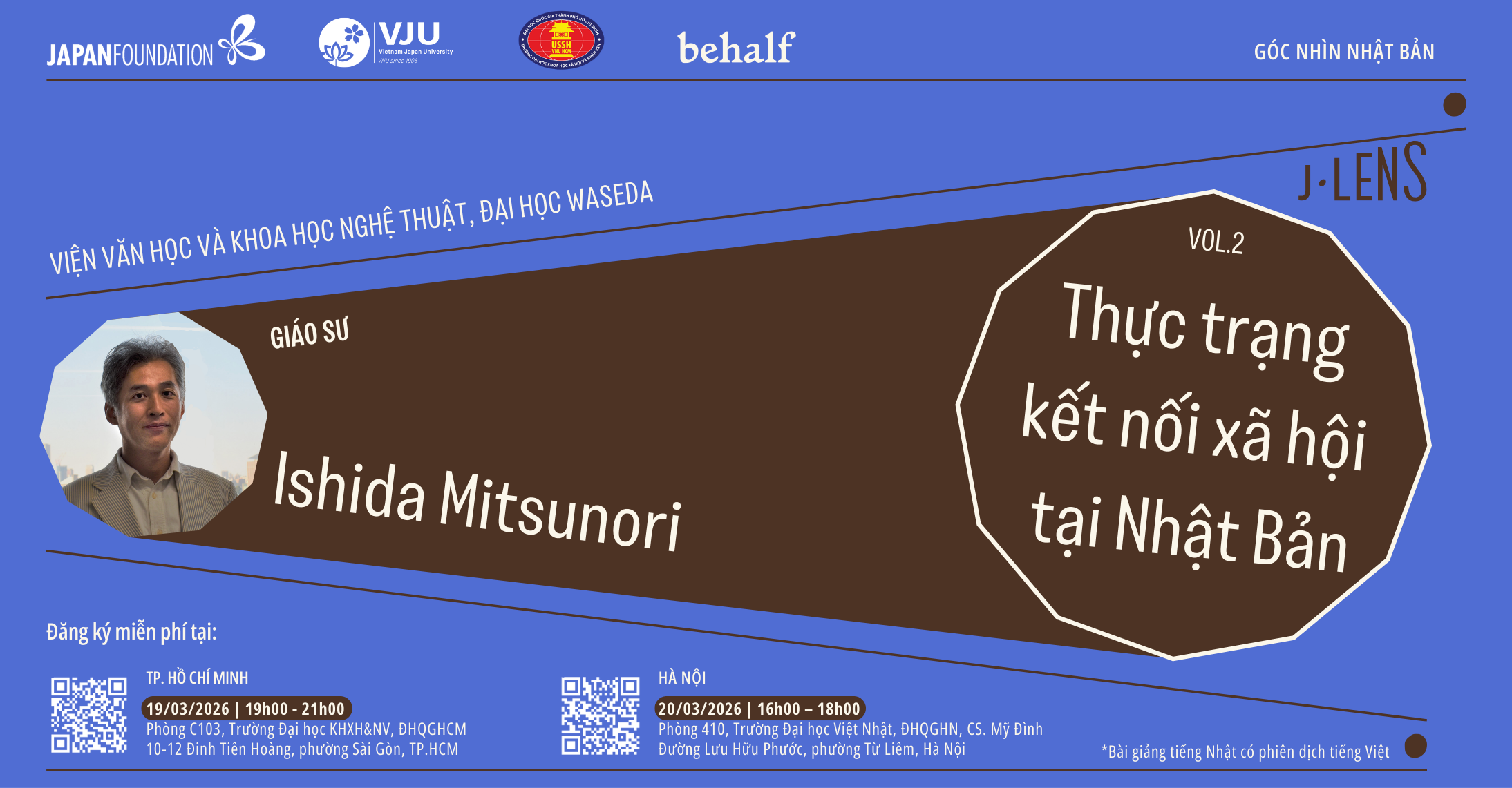 In collaboration with: VNU-HCM, University of Social Sciences and Humanities (for lecture in HCM), VNU-HN, Vietnam Japan University (for lecture in Hanoi)