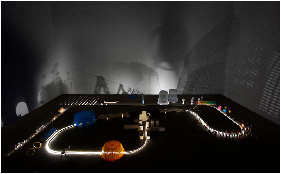 Most of the materials used in the exhibition are everyday objects readily found and purchased in Hanoi. One installation reexamines the sense of familiarity and strangeness – jamais vu and déjà vu – through Hanoi landscapes constructed from the shadows of ordinary household items. By suspending their practical functions as tools, Kuwakubo invites viewers to rediscover these objects in their purest form. Simple in structure yet intricate in execution, the installation promises to captivate audience of all ages. Through the second installation, the artist looks to convey the dynamism of the city’s traffic with delicate composition of wooden rods and a mobile lighting system, referencing Alexander Calder’s famous kinetic work “Small Sphere and Heavy Sphere” in New York in 1932.