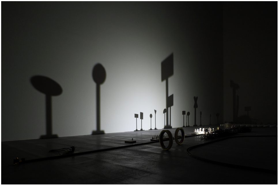 Đa số vật liệu dùng trong triển lãm là vật dụng hằng ngày, sẵn có và dễ dàng mua được ở bất kì đâu tại Hà Nội. Một tác phẩm sắp đặt đào sâu cảm thức thân thuộc và xa lạ – jamais vu và déjà vu – qua các khung cảnh Hà Nội được tạo dựng từ bóng chiếu của đồ vật. Khi tạm ngưng chức năng thực tế của chúng – vốn là các công cụ, Kuwakubo mời gọi người xem tái khám phá hình dạng nguyên thủy nhất của các vật dụng này. Đơn giản về cấu trúc nhưng tinh tế về thủ pháp, tác phẩm hứa hẹn sẽ thu hút khán giả mọi lứa tuổi. Trong khi đó, với tác phẩm thứ hai, nghệ sĩ mong muốn truyền tải năng lượng năng động của giao thông thành phố, thông qua xếp đặt hài hòa giữa những thanh gỗ và hệ thống ánh sáng tự chuyển động, tham chiếu từ tác phẩm nổi tiếng “Small Sphere and Heavy Sphere” của Alexander Calder được sáng tác năm 1932 ở New York.