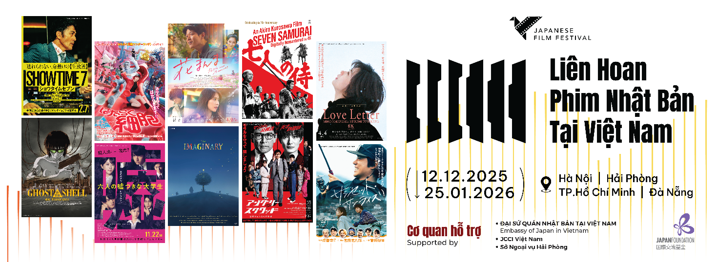 Quỹ Giao lưu Quốc tế Nhật Bản (The Japan Foundation) tại Việt Nam trân trọng giới thiệu Liên hoan Phim Nhật Bản 2025, sẽ diễn ra từ 12/12/2025 đến 25/01/2026 tại bốn thành phố: Hà Nội, Hải Phòng, Thành phố Hồ Chí Minh và Đà Nẵng.